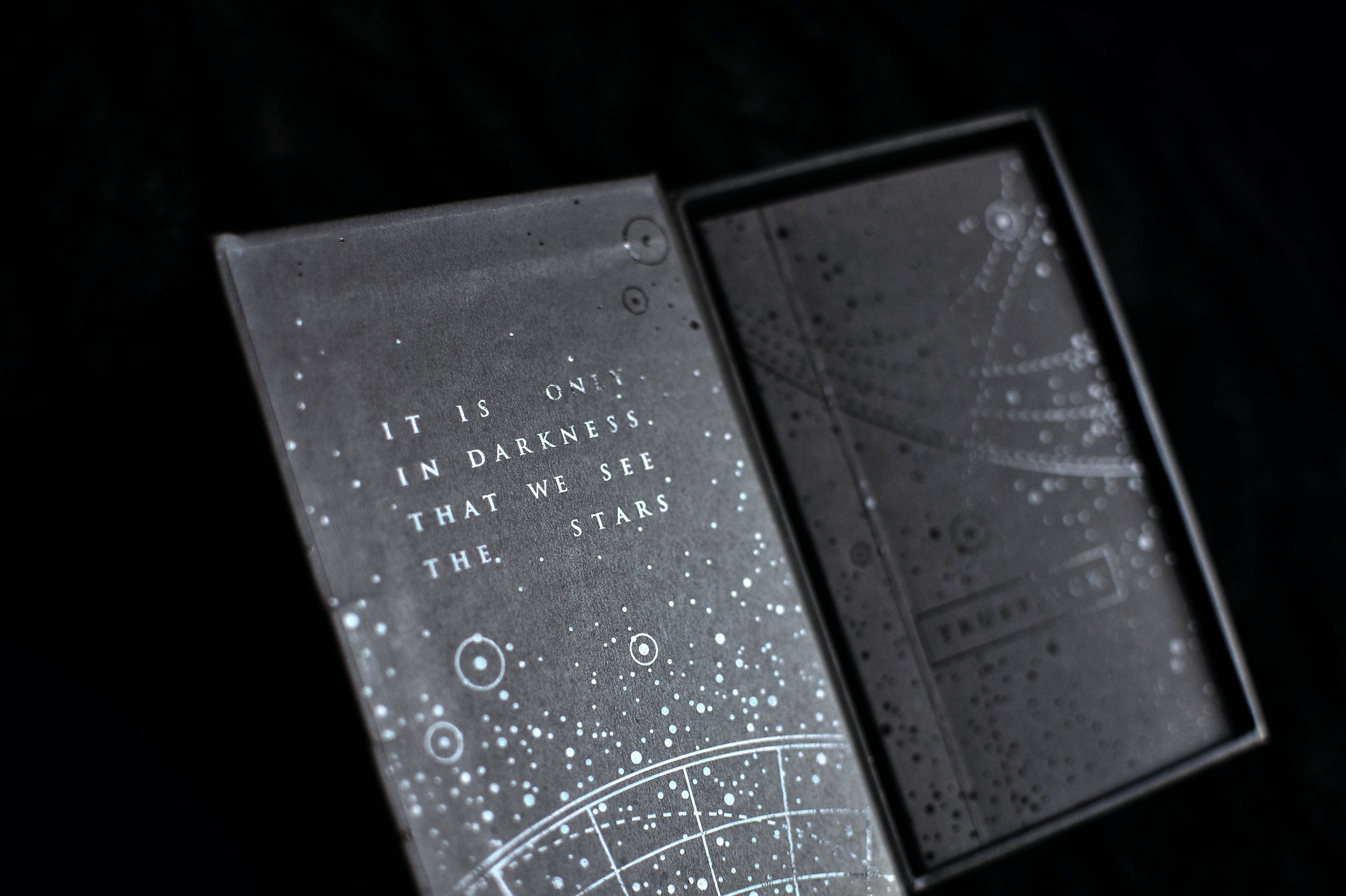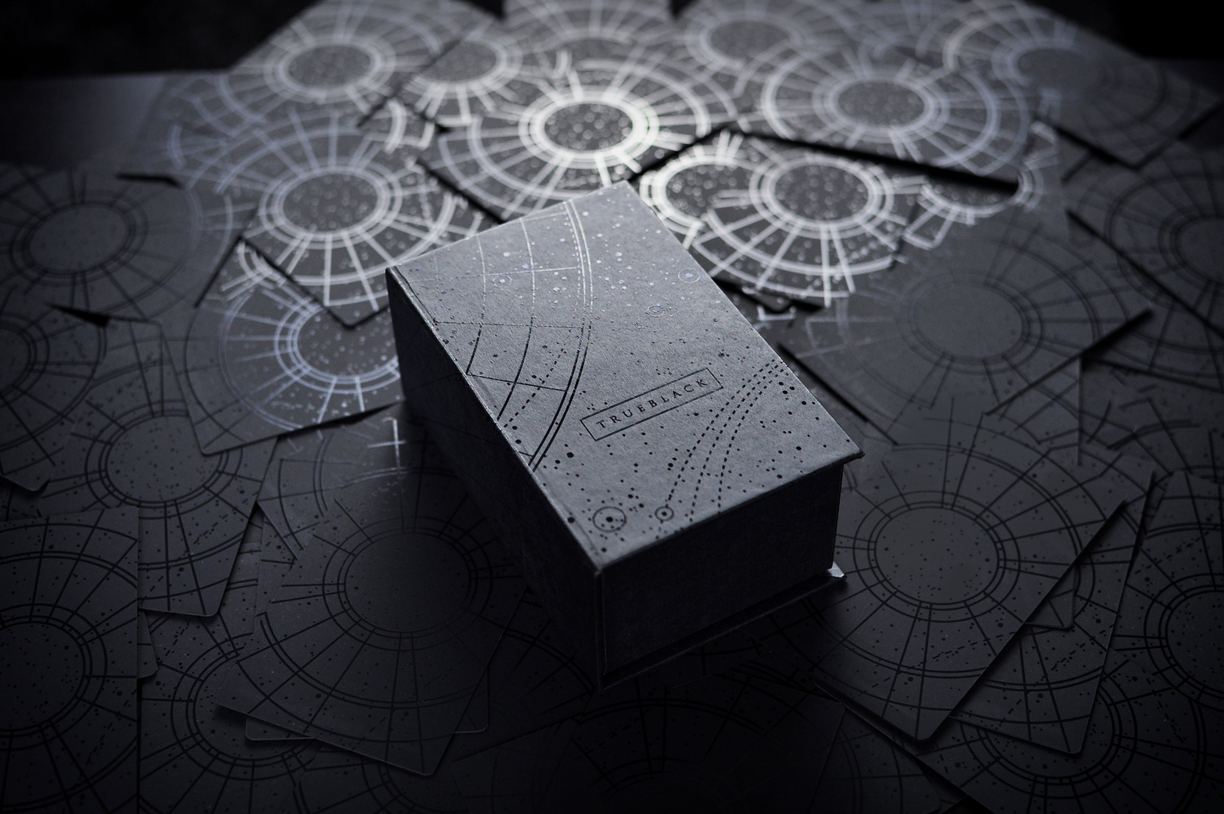 Core to the concept of TrueBlack is the interconnectedness of all, embodied in the stars and skies shared by humanity through all lands and epochs. Each box, booklet, and card back is adorned with maps of the heavens.